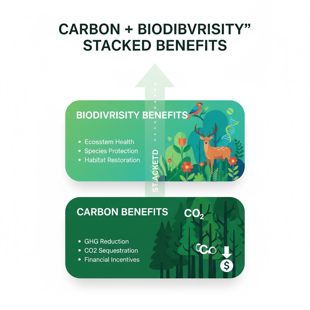 This creates a stacked benefits model, rewarding projects for the full scope of environmental value they deliver.